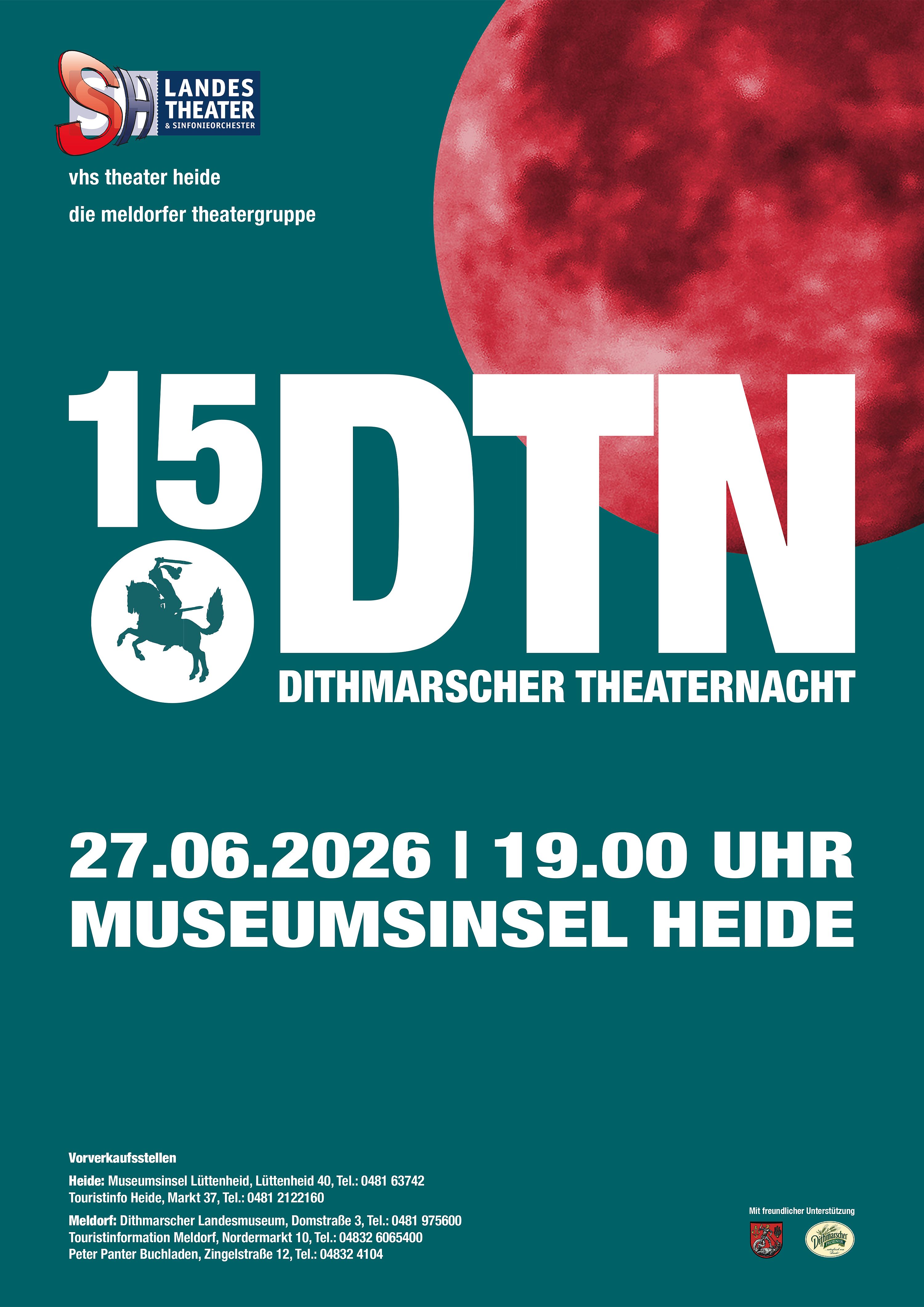 Die Theater der Region Dithmarschen laden bereits zum 15. Mal zur DITHMARSCHER THEATERNACHT ein. Das Schleswig-Holsteinische Landestheater hat gemeinsam mit der meldorfer theatergruppe und dem vhs theater heide wieder ein buntes Programm auf die Beine gestellt, in dem ein Höhepunkt den nächsten jagt. Im ganzen Haus bieten die verschiedenen Ensembles Kultur zum (Be)Staunen und Lachen aber auch zum Nachdenken.